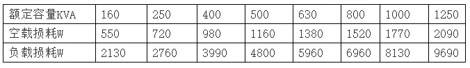 干式變壓器技術(shù)參數(shù)有:①頻率50Hz,②空載電琉,要求少于4%,③低壓耐壓強(qiáng)度:2KV/min無擊穿,④絕緣電阻低壓側(cè)不少于2MΩ,⑤繞組連接方式:/Y/yn0,與D/yn0 ,⑥線圈允許溫升100K,⑦散熱方式:自然風(fēng)冷或溫控風(fēng)冷,⑧噪聲系數(shù)小于30dB。各種容量干式變壓器(SCB型)損耗參數(shù)如表1所示。