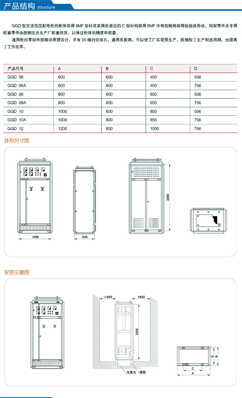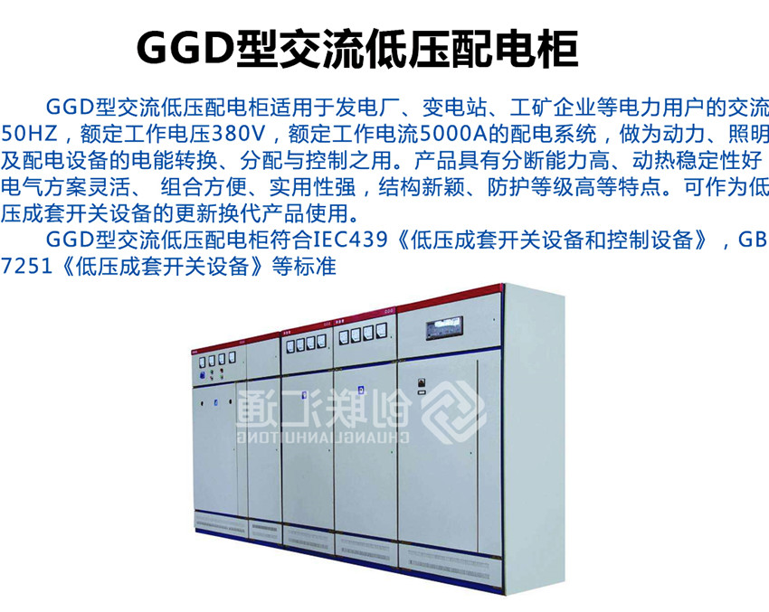 GGD型交流低壓配電柜是根據(jù)能源部主管上級(jí),廣大電力用戶及設(shè)計(jì)部門的要求,本著安全、經(jīng)濟(jì)、合理、可靠的原則設(shè)計(jì)的新型配電柜。產(chǎn)品具有分?jǐn)嗄芰Ω撸瑒?dòng)熱穩(wěn)定性好,電氣方案靈活、組合方便,系列性、實(shí)用性強(qiáng),結(jié)構(gòu)新穎、防護(hù)等級(jí)高等特點(diǎn),可以作低壓成套開關(guān)設(shè)備的更新?lián)Q代產(chǎn)品使用。并且廣泛適用于發(fā)電廠、變電所、工業(yè)企業(yè)等電力用戶作為交流50HZ,額定工作電壓380V,額定電流至3150A 的配電系統(tǒng)中作為動(dòng)力,照明及配電設(shè)備的電能轉(zhuǎn)換、分配與控制之用。該產(chǎn)品分?jǐn)嗄芰Ω?,額定短結(jié)構(gòu)新穎等特點(diǎn)。該產(chǎn)品是我組裝式、固定面板開關(guān)柜的代表產(chǎn)品之一。