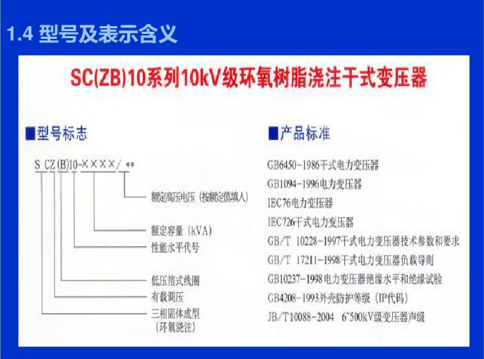 ⒊澆注式:用環(huán)氧樹脂或其它樹脂澆注作為主絕緣,它結(jié)構(gòu)簡單、體積小,適用于較小容量的變壓器。