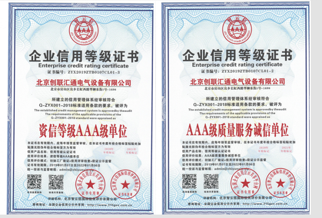 恭賀創(chuàng)聯(lián)匯通電氣再獲“中國(guó)AAA級(jí)信用企業(yè)”!