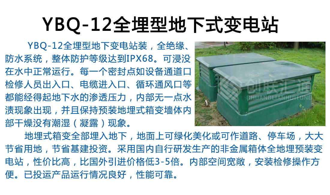 地埋式箱變主要由地埋式變壓器和廣告燈箱式的戶外開關(guān)設(shè)備組成。地埋式變壓器是由變壓器、高壓負(fù)荷開關(guān)、熔斷器等組合在一起的一種新型的緊湊型的變電設(shè)備,它安裝在地坑中,不占用地表空間,而且能在一段時(shí)間內(nèi)浸沒(méi)在水中運(yùn)行。廣告燈箱式的戶外開關(guān)設(shè)備為集廣告牌及戶外開關(guān)設(shè)備為一體的混合結(jié)構(gòu),安裝在地面。箱體內(nèi)部為戶外高低壓配電柜,兩側(cè)為廣告燈箱,具有極佳的視覺(jué)效果。