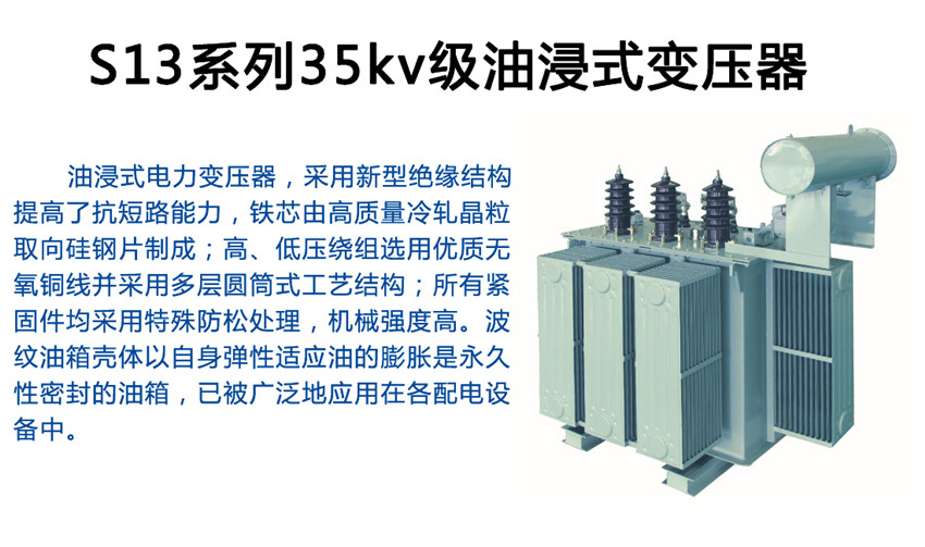 S13油浸式全密封配電變壓器,不同于普通油浸式變壓器,它取消了儲油柜,由油箱體的波紋板式散熱片來散熱冷卻,其彈性脹縮補(bǔ)償油體積的增減。各系列產(chǎn)品適用在10KV、20KV、35KV輸配電系統(tǒng)中,可供居民區(qū)、商業(yè)街道、工礦企業(yè)和農(nóng)村動力及照明之用。